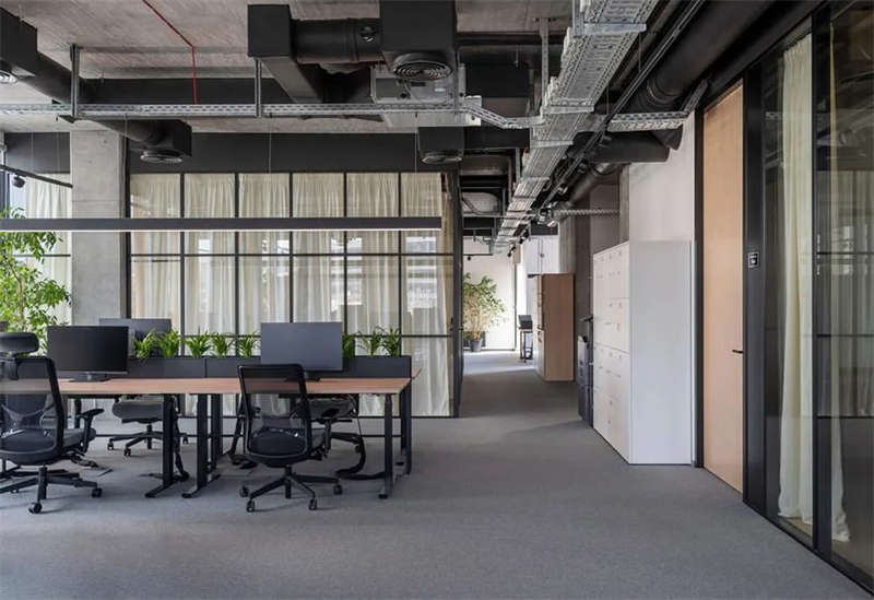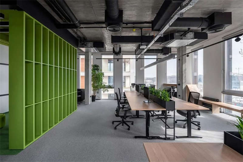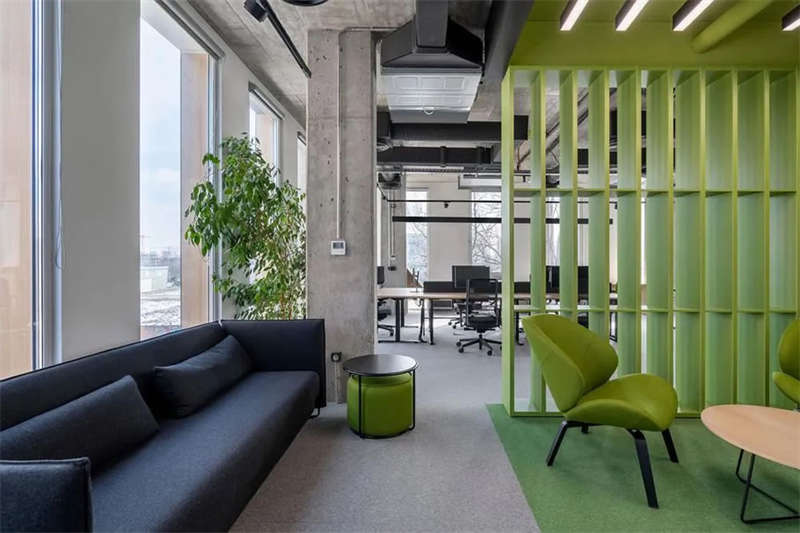 開放式空間因為穿插了大量的會議室而被分隔成若干小型區域;而那些由此形成的開放協作區則被賦以清新的色彩,強調其功能特性的同時也營造出一個活力多彩的空間表情,與此同時,這些空間也與其它區域一樣保持同樣的工業觸感和一致的基調。
