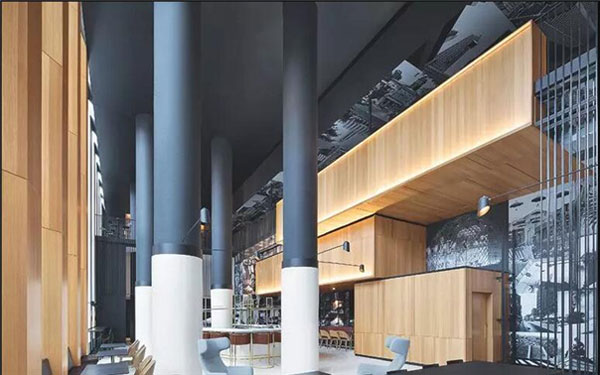 蒙維爾酒店,這是一家以工業(yè)風(fēng)為基調(diào)的酒店,黑白黃是酒店使用zui多的顏色,大堂的中央設(shè)有一個(gè)菱形的白色水磨石吧臺,搭配以黃銅材質(zhì)的細(xì)部。經(jīng)典堅(jiān)硬與柔軟并存的創(chuàng)意指引了客人在此停留或休閑的和一杯咖啡,體會這舒適的感覺。