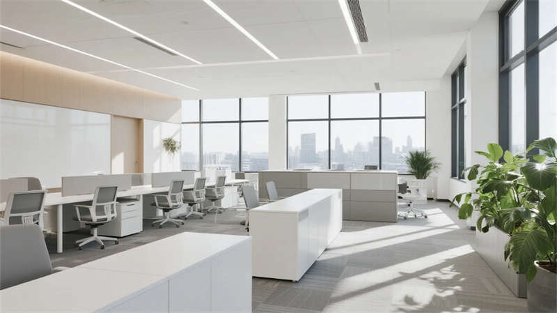 這座辦公空間設計以現代簡約風格為核心,通過統一的美學語言打造出和諧而高效的空間體驗。整體采用中性色調和簡潔線條,強調自然光的最大化利用,營造出明亮通透的氛圍。功能區布局注重流暢性,從接待區的開放迎賓到開放式辦公區的協作精神,再到會議室的專業嚴謹,每個空間都融入了綠植點綴,增添生機感。休閑休息區提供舒適放松的角落,獨立辦公室則平衡了隱私與專注,茶水間和衛生間延續了簡約實用的設計原則,多功能室支持靈活多變的活動需求。設計亮點在于對生態元素的融合,如大量綠植和自然光,提升了環境品質,同時現代家具和材質選擇強化了簡約美學,確保功能與美感的統一。該項目體現了對辦公環境的革新思考,致力于創造一個既高效又宜居的空間,成為城市辦公新標桿。