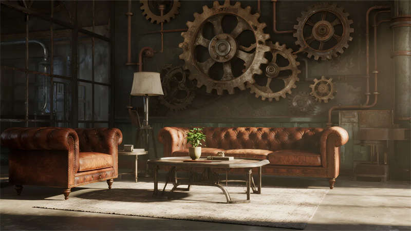 這組工業風辦公室設計以裸露結構和復古質感為核心,通過混凝土、金屬和木質材料的碰撞,打造出兼具實用性與藝術感的辦公空間。空間保留了建筑的原始肌理,如天花板的管線和墻面的磚紋,搭配黑色鐵藝家具和深色調軟裝,營造出冷峻而富有張力的氛圍。局部通過皮質沙發、綠植和暖光燈具軟化工業風的硬朗感,增添人文氣息。