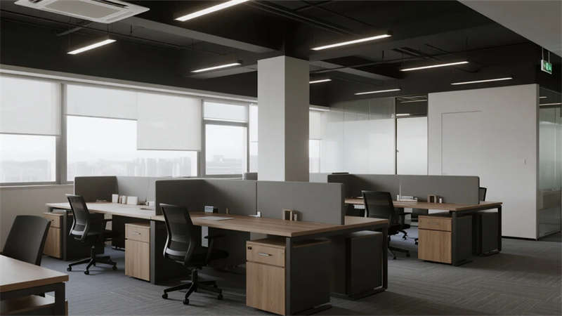 開放辦公區(qū)依托巨幅落地窗引入自然韻律,升降工位與模塊化家具賦予空間彈性;獨(dú)立辦公室通過垂直百葉調(diào)節(jié)光影私密性,暗藏式書柜燈光烘托沉穩(wěn)氣質(zhì)。核心協(xié)作區(qū)打破傳統(tǒng)封閉模式,弧形沙發(fā)與可書寫玻璃墻激發(fā)即興創(chuàng)意,而茶水間綠植墻與城市景觀吧臺,則在高效節(jié)奏中注入呼吸感。