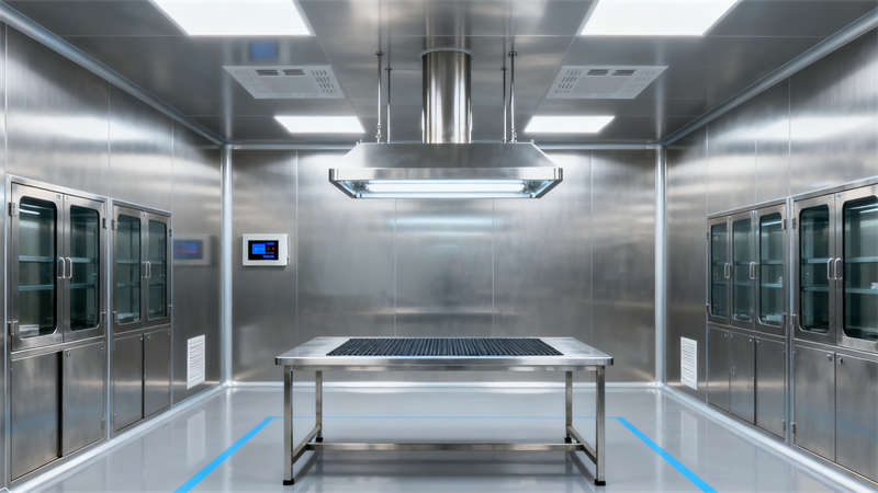 室內空間圍繞醫療器械生產需求展開,各區域設計既適配功能,又保持視覺統一。無菌組裝區域選用無縫潔凈材質,避免積塵殘留,保障生產環境;精密檢測區側重隔音與光線控制,為檢測工作營造低干擾氛圍;原料倉儲區以規整的貨架布局,適配物料存放需求;研發實驗室設置島式實驗臺與通風柜,兼顧實驗操作與中試功能;潔凈走廊通過指引設計明確人流物流方向,確保流程有序;無菌更衣區按潔凈流程分區,實現人員潔凈過渡;中控室以核心監控設備為中心,方便實時掌握廠房運行狀態。