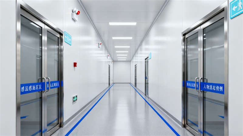 各區域均采用無眩光LED燈光,材質上優選環氧地坪、不銹鋼與鋼化玻璃,既滿足醫療器械生產的潔凈要求,又讓整個廠房在視覺上保持連貫統一,兼具功能性與行業適配性。