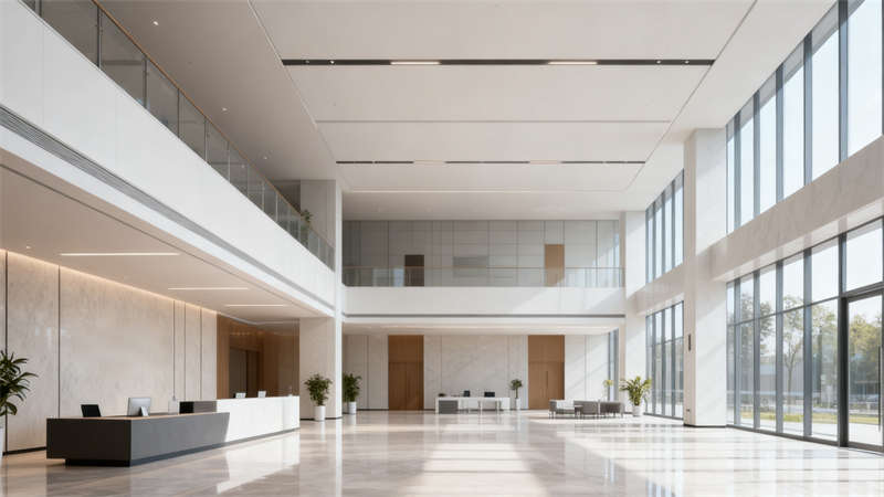 本設(shè)計圍繞蚌埠地域人文特質(zhì)與現(xiàn)代辦公需求展開,在辦公樓裝修中實現(xiàn)功能與美學(xué)的深度融合,確保外觀與室內(nèi)風格高度統(tǒng)一,呈現(xiàn)連貫的項目整體感。