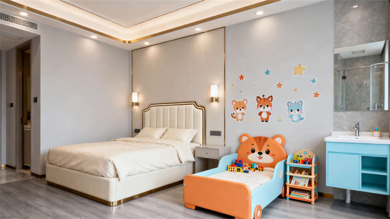 公共區(qū)域與客房保持風(fēng)格一致,從外觀的玻璃幕墻與石材拼接,到室內(nèi)大堂的胡桃木格柵背景墻、餐廳的金屬框架與大理石臺面,每一處細(xì)節(jié)都延續(xù)了現(xiàn)代輕奢的設(shè)計語言。軟裝選擇上,莫蘭迪色系的抱枕、暖橘色的點綴,以及自然綠植的融入,為空間增添了溫馨感,讓整體裝修既顯精致格調(diào),又避免了冰冷生硬,全方位提升了酒店的居住與體驗質(zhì)感。?