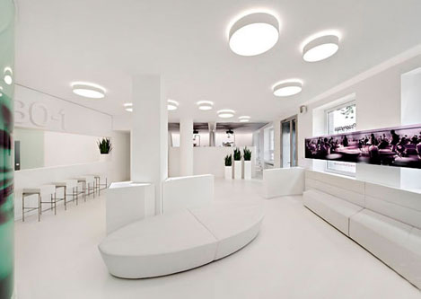 設計理念:牙科診所最終還是歸屬醫院范疇,給病人治病的。只是牙科診所可以在裝修上比醫院有更多的想法和創意的設計元素在里面。白色的地磚灰色的座椅使空間設計更嚴謹,傳遞出一種信任感并營造出臨床氛圍。