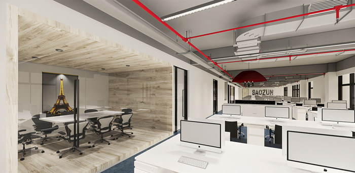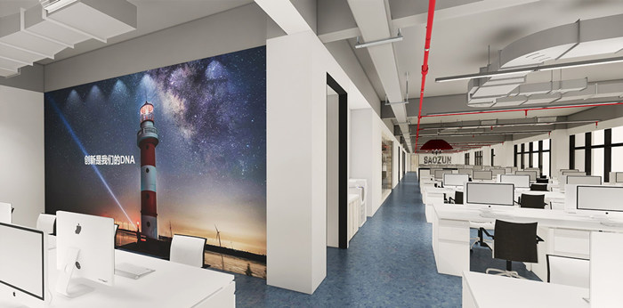 電子商務商業伙伴和領先的技術研發及解決方案公司。設計團隊根據電商的科技創新與行業桂冠特性,在設計中采用具有科技力量的LOFT風格,并將企業特性經過藝術手法運用到辦公空間設計之中,使平常的空間關系發生了變化,從而營造出具有科技、創新、活力的辦公空間氛圍。