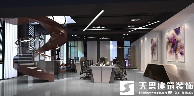 員工辦公空間設(shè)計(jì)應(yīng)根據(jù)工作需要和部門(mén)人數(shù)并參考建筑結(jié)構(gòu)設(shè)定面積和位置。首先應(yīng)平衡各室之間的大關(guān)系,然后再作室內(nèi)安排。布置時(shí)應(yīng)注意不同工作的使用要求,如對(duì)外接洽的,要面向門(mén)口;做文案和設(shè)計(jì)的,則應(yīng)有相對(duì)安靜的空間。還要注意人和家具、設(shè)備、空間、通道的關(guān)系,確保使用方便、合理、安全。辦公臺(tái)多為平行垂直方向擺設(shè)。大的辦公空間,做整齊的斜向排列也頗有新意,但要注意使用方便和與整體風(fēng)格協(xié)調(diào)。