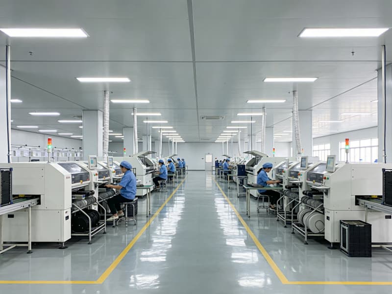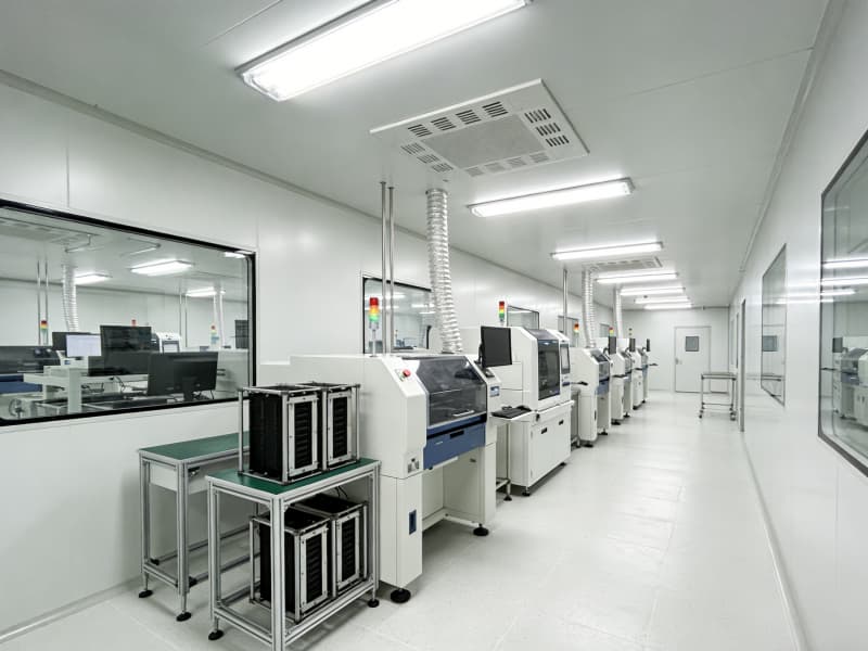 步入內部,生產區空間寬敞,為保證生產操作的精準度與高效性,采用無柱式大空間設計。頂部配備先進的照明系統,光線均勻柔和,滿足各類電子生產工序對照明的嚴格要求。地面選用防靜電、耐磨的環氧樹脂地坪,確保電子產品生產環境的穩定性。