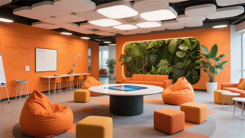 步入其中,純凈的白色與淺灰基調構筑出開闊明亮的基底,大面積玻璃幕墻邀請陽光自由流淌。室內,垂直綠墻與蔥郁盆栽如音符般跳躍,為嚴謹的研發環境注入蓬勃生機。開放辦公區強調協作與靈活,可書寫的玻璃墻面激發無限創意;高度自動化的核心生產車間則如同精密的樂章,潔凈無塵的環境、流線型的自動化設備與身著無塵服的工程師,共同演繹著尖端制造的嚴謹與高效。從充滿科技藝術感的展示廳、活力四射的創意協作區,到靜謐專注的工作艙、溫馨舒適的休憩社交中心,再到專業大氣的會議空間,每一處功能區域都浸潤著統一的未來主義美學——簡約的線條、智能的光影、環保的材質與克制的企業色點綴。
