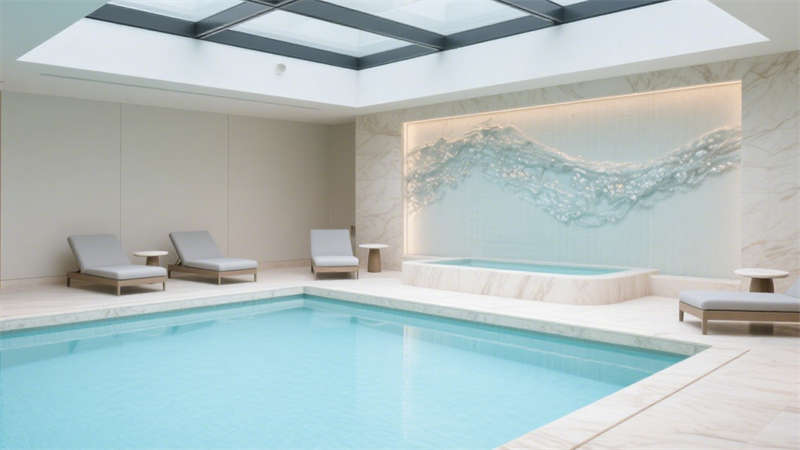 在公共區域,大堂以開闊通透的布局呈現,大面積的落地玻璃引入充足自然光線,讓空間更顯明亮通透。接待區選用柔軟的布藝沙發與金屬質感的裝飾擺件相搭配,既傳遞出溫馨的氛圍,又不失精致格調。走廊設計則注重引導性,墻面采用肌理感材質,搭配嵌入式燈光,營造出靜謐而優雅的行走體驗。