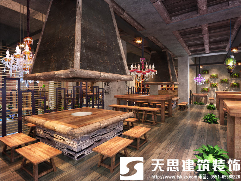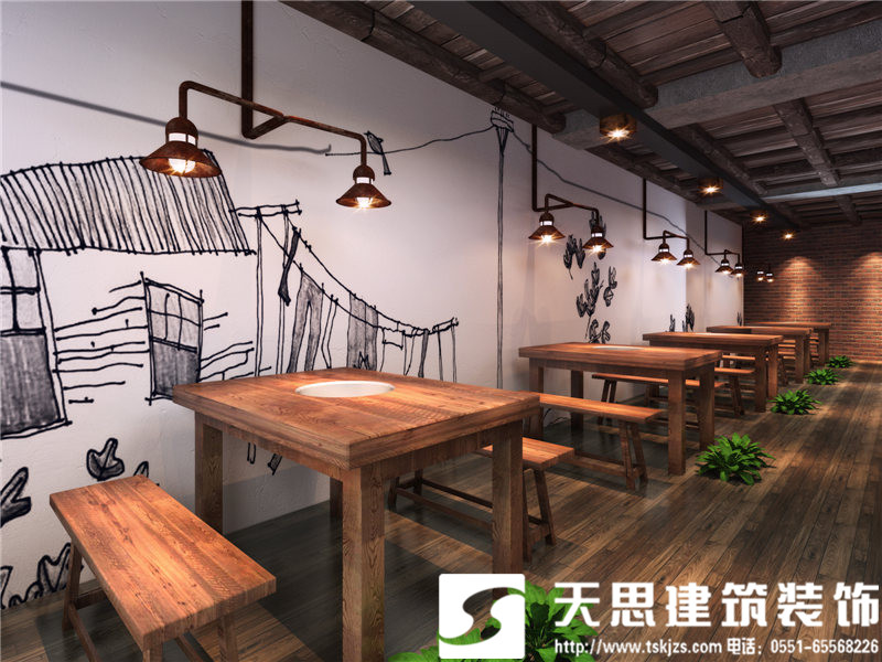 此案有別于通常的火鍋店設(shè)計,沒有明艷的色澤和雜亂的修飾,更沒有一覽無余的空間鋪排,在以市場經(jīng)濟為首的時代,歸本主義的設(shè)計風(fēng)格,顯得尤為獨特和罕見。采用天然材質(zhì)設(shè)計空間,以原木為主基調(diào),輔以清水混凝土和斑駁鋼鐵整合空間構(gòu)架,加上簡約時尚的設(shè)計手法,整個火鍋店溫暖愜意的氛圍在設(shè)計里自然彌漫。