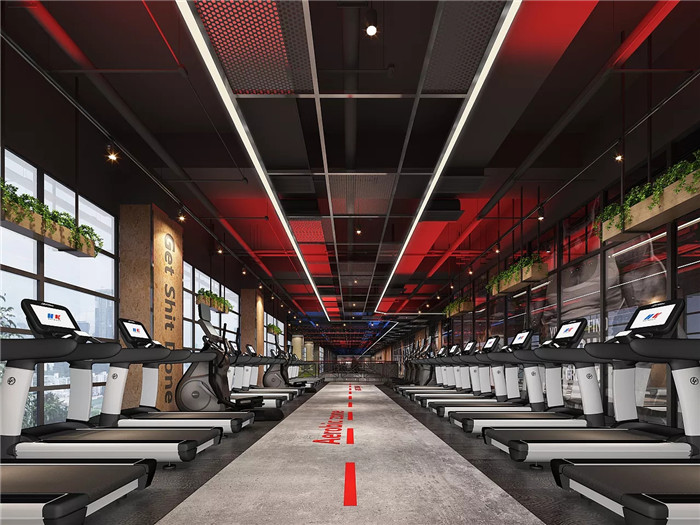 (1)動(dòng)感單車房的裝修和操房差不多,也要求注意與整個(gè)健身房的融合統(tǒng)一。