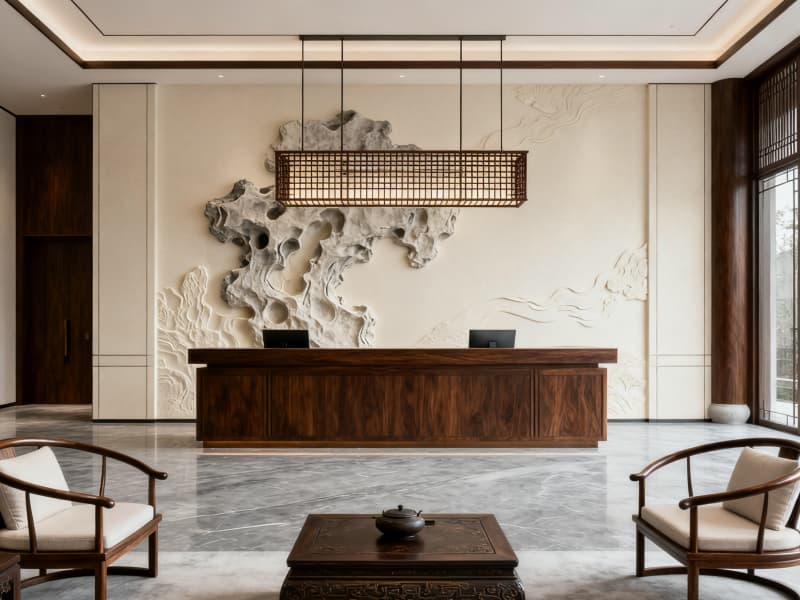 本設計以“新中式簡約+宿州文化賦能”為核心,打造兼具實用性、格調感與地域特色的3000平辦公空間。整體風格摒棄傳統中式的繁復,提取宿州古建、靈璧石、非遺文化等元素,以現代設計語言重新詮釋,既符合當代辦公需求,又暗藏文化底蘊。
