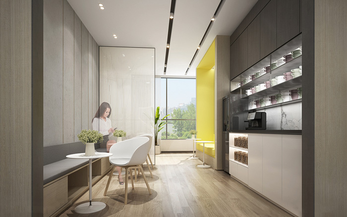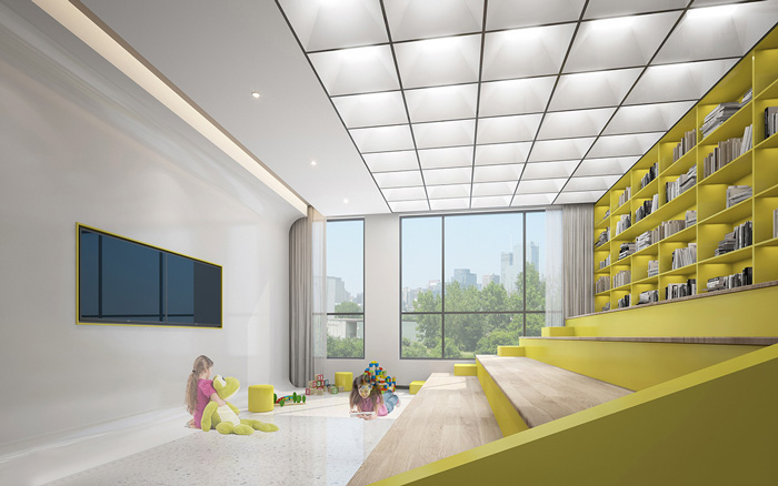 此處藝術(shù)學(xué)校設(shè)計(jì)中,告別了五彩斑斕的顏色,突出了空間的簡潔與干凈,用黃色做為點(diǎn)綴色提升空間的趣味性。
