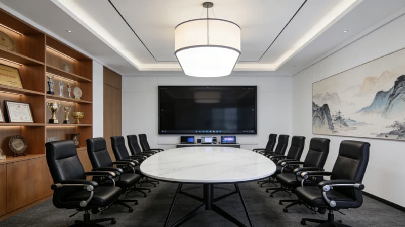 在色彩運用上,以白色、灰色為主色調,搭配少量的木色和藍色作為點綴。白色象征著純凈與整潔,灰色體現工業的沉穩與專業,木色增添自然溫暖氛圍,藍色則代表科技與創新,共同構建出一個既符合工業特性又不失活力的色彩體系。材質選擇上,大量運用金屬、玻璃、石材和木材,通過不同材質的組合與碰撞,展現現代工業美學。