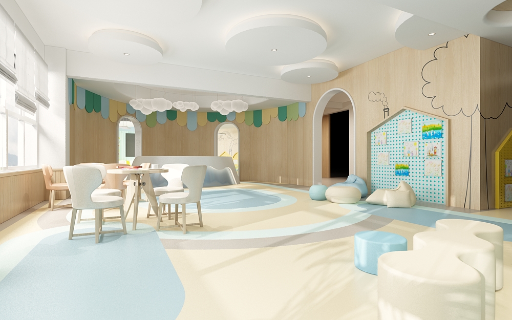 4、幼兒園的教室,過道以及其他流動空間是固定的,而繁多的器材,教具,和娛樂設施往往和空間產生沖突,給兒童留出寬敞的活動空間是優秀的幼兒園裝修創設需要重視的。