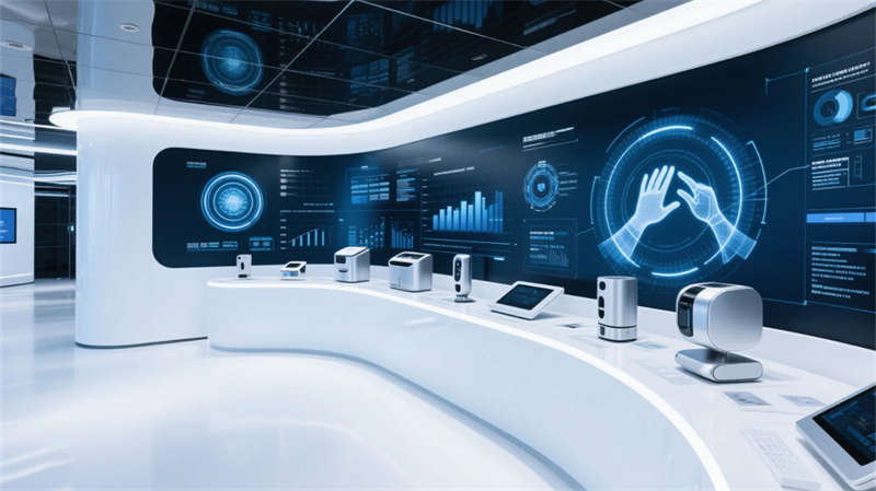 全廳采用模塊化智慧系統,互動桌面、全息投影與流體藝術墻實時響應參觀行為,在展示功能性與人文關懷間建立精妙平衡。最終的未來暢想區以鏡像空間延展視覺維度,在粒子光舞中激發創新對話——這里不僅是企業實力的窗口,更是合肥創新精神的沉浸式體驗場域。